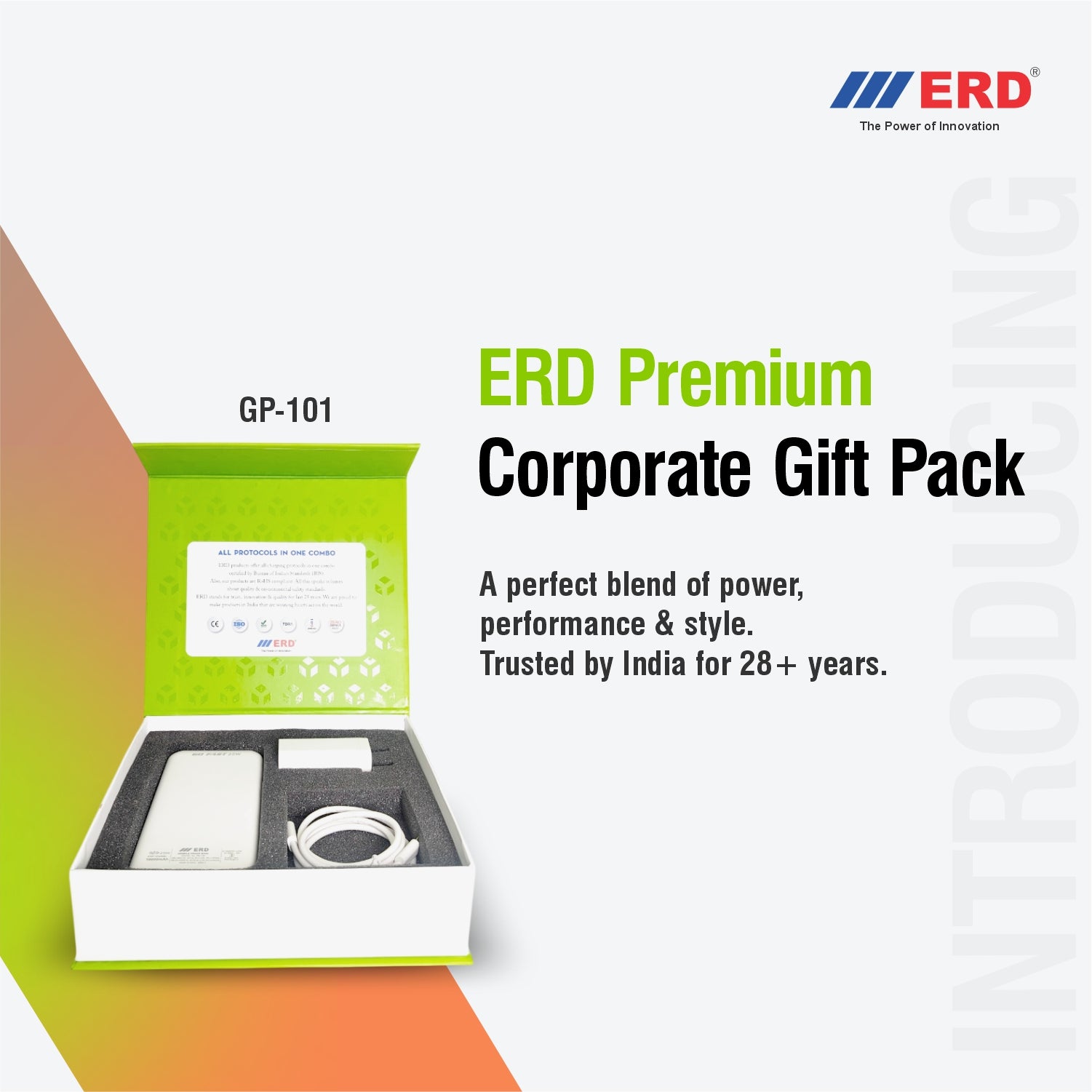 Upgrade your corporate gifting with the ERD Premium Corporate Gift Pack, a perfect blend of power, performance & premium design. Trusted by India for 28+ years, ERD brings high-quality mobile accessories packed in a stylish, customizable gift box—ideal for employees, clients, and partners.